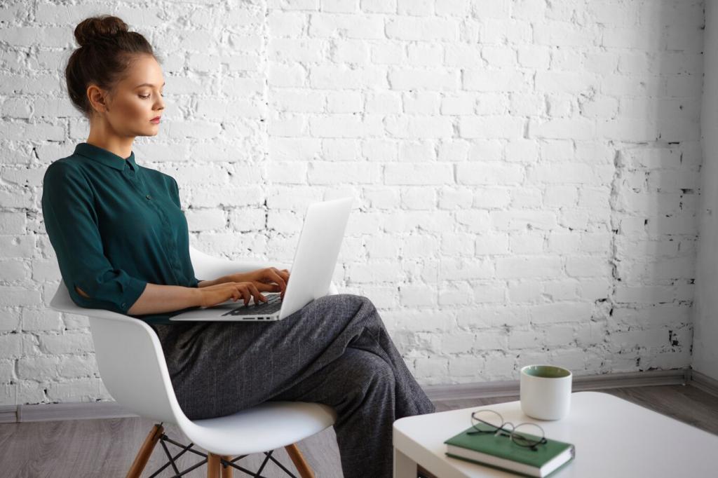 Indirekte Deckenwascher für weiche Grundhelligkeit, eine gelenkige Tageslicht-Schreibtischlampe seitlich, warmes LED-Band als Hintergrund. Rollos für Streuung, matte Oberflächen gegen Reflexionen. Probieren Sie eine ähnliche Struktur und teilen Sie Ihre Ergebnisse nach einer Woche Testzeit.